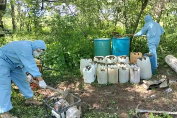 A través de trabajos de reconocimiento terrestre, en el marco de la “Operación Búsqueda, Localización y Destrucción de Laboratorios Clandestinos”, el personal localizó dos áreas de concentración de materiales químicos y un laboratorio clandestino.