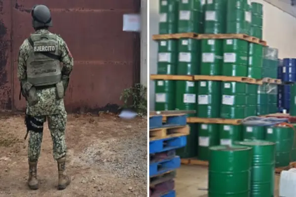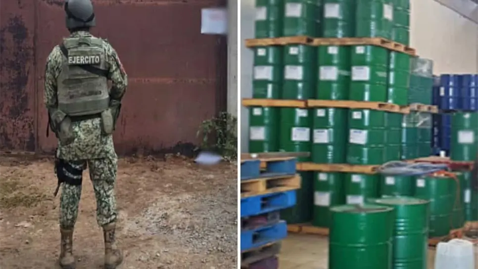 Dentro de la bodega también localizaron dos reactores de síntesis orgánica, cuatro destiladores, una centrifugadora, dos remolques de caja seca, cuatro montacargas y dos vehículos.