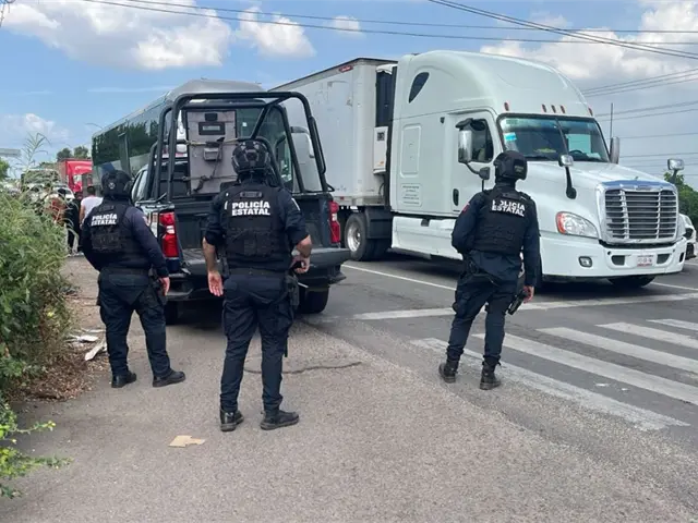 Sujetos armados atacan a dos policías de la Secretaría de Seguridad Pública del Estado de Sinaloa, durante el tiroteo que se dio por el bulevar Jesús Kumate en Culiacán. Un camión de pasajeros resultó baleado.