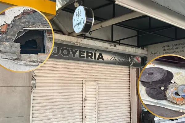 Según la versión del propietario, los delincuentes ingresaron al inmueble después de abrir un boquete en el techo de un negocio contiguo. Posteriormente, perforaron y derribaron una pared que conectaba directamente con la bóveda de la joyería, lo que les permitió llegar al interior.