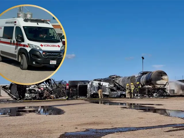 “Se involucran dos pipas o tanques con capacidad de hasta 30,000 litros de combustible, al parecer es diésel, y otros dos más pequeños de 15,000 litros cada uno. Uno de ellos fue el que más trabajo les costó sofocar y ahorita están en la etapa de enfriamiento”.