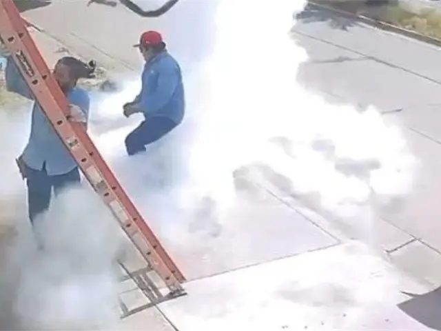 En un instante la manguera sufrió aparentemente una abertura, y salió disparada, incluso la parte final de la manguera donde se encuentra la bomba dispensadora estuvo a punto de golpear a otro de los trabajadores, quien rápidamente se cubrió la cabeza y corrió, al igual que el propietario de la vivienda.