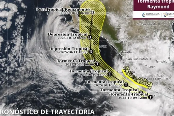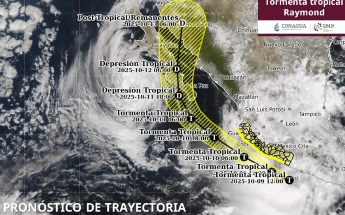El Servicio Meteorológico Nacional (SMN), en coordinación con la Comisión Nacional del Agua (Conagua), ha confirmado la mañana de este jueves 9 de octubre la formación de la Tormenta Tropical “Raymond” en el Océano Pacífico, alertando a varios estados del occidente y sur de México.