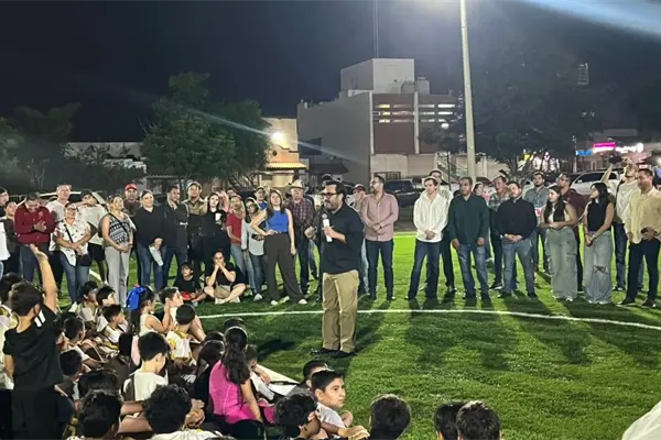 "Vinimos a entregarles una cancha de fútbol, pasto sintético, todas las porterías, las redes, alumbrado público, aquí entrena la escuelita de La Macías, una escuelita relativamente grande", comentó.