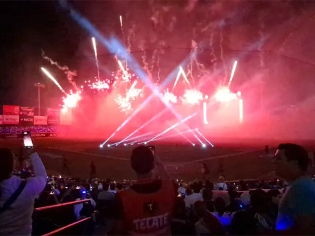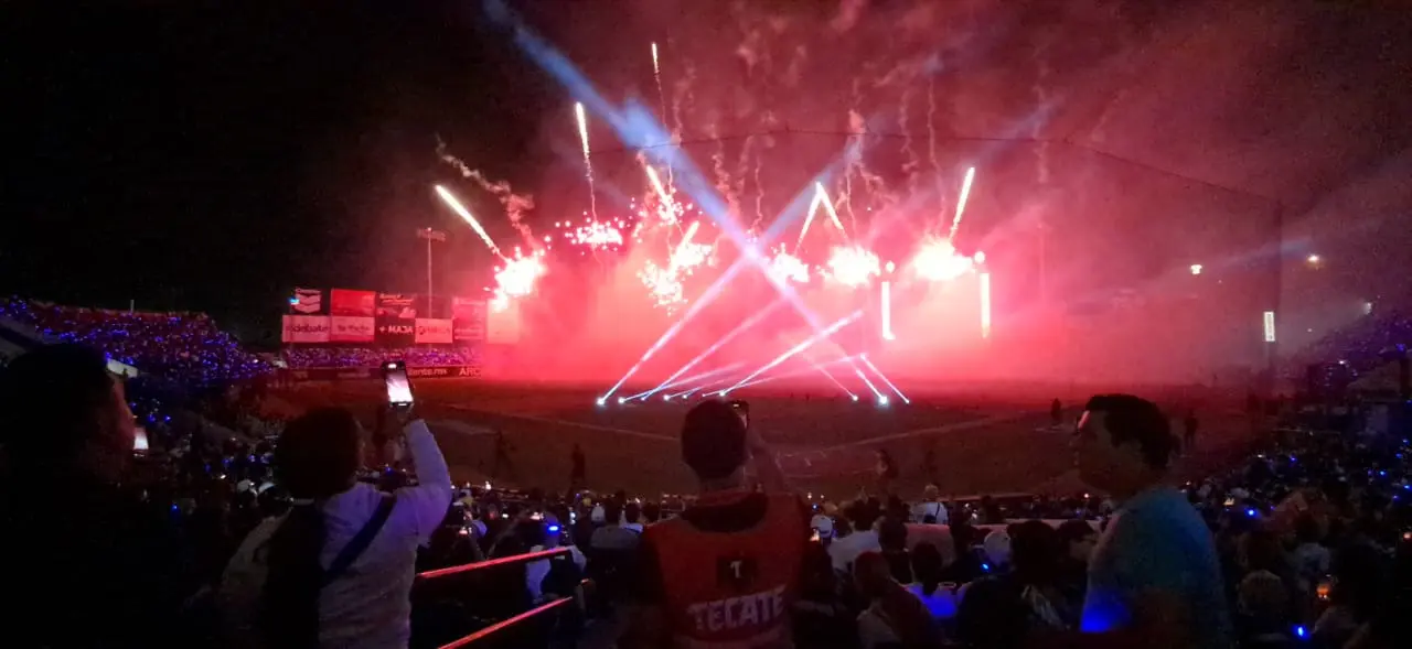 Con un espectáculo de pirotecnia y drones, los Cañeros de Los Mochis dieron la bienvenida a la temporada 25-26 de la Liga Mexicana del Pacífico inaugurando así una campaña más en el Chevron Park.