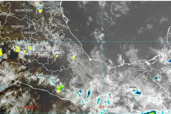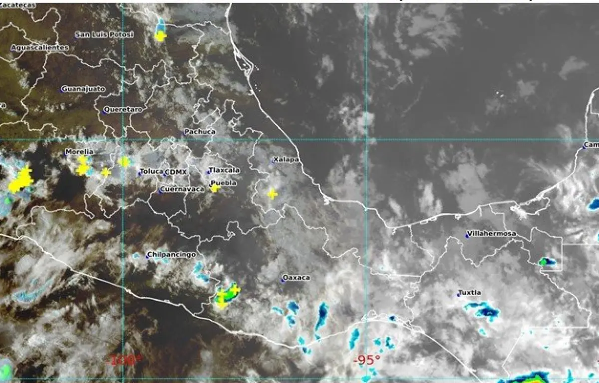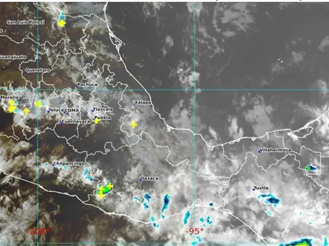 Durante esta noche y madrugada del jueves, un canal de baja presión extendido sobre el oriente del país, en interacción con los desprendimientos nubosos de una zona de baja presión con probabilidad para desarrollo ciclónico ubicada al sur de Oaxaca, ocasionarán lluvias puntuales intensas en Chiapas (regiones Altos, Centro, Fronteriza, Frailesca, Sierra y Soconusco); muy fuertes en Guerrero (occidente) y Oaxaca (norte), fuertes en Puebla (regiones Valle Serdán y Tehuacán-Sierra Negra), Veracruz (regiones Capital, Sotavento, Las Montañas, Papaloapan, Los Tuxtlas y Olmeca) y Tabasco (sur), así como lluvias con intervalos de chubascos en Tamaulipas (sur y costa), San Luis Potosí (oriente), Veracruz (regiones Huasteca Alta, Huasteca Baja, Totonaca y Nautla), Querétaro (norte) e Hidalgo (norte y este).