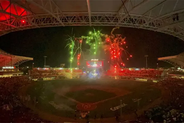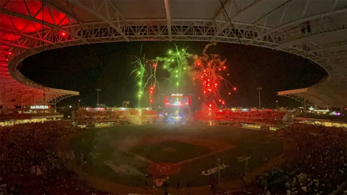 Espectacular inauguración de la temporada de beis en Mazatlán; pirotecnia y Los 2 de la S encienden los ánimos de la afición
