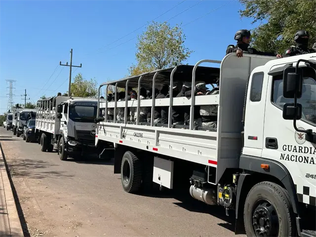 El convoy estaba integrado por camiones Mercedes-Benz en los que en cada uno viajan al menos 30 elementos de la Guardia Nacional comisionados a la revisión penitenciaria, así como patrullas de la Guardia Nacional y una decena de patrullas de la Policía Estatal Preventiva, entre ellas dos artilladas y un "rinoceronte" blindado.