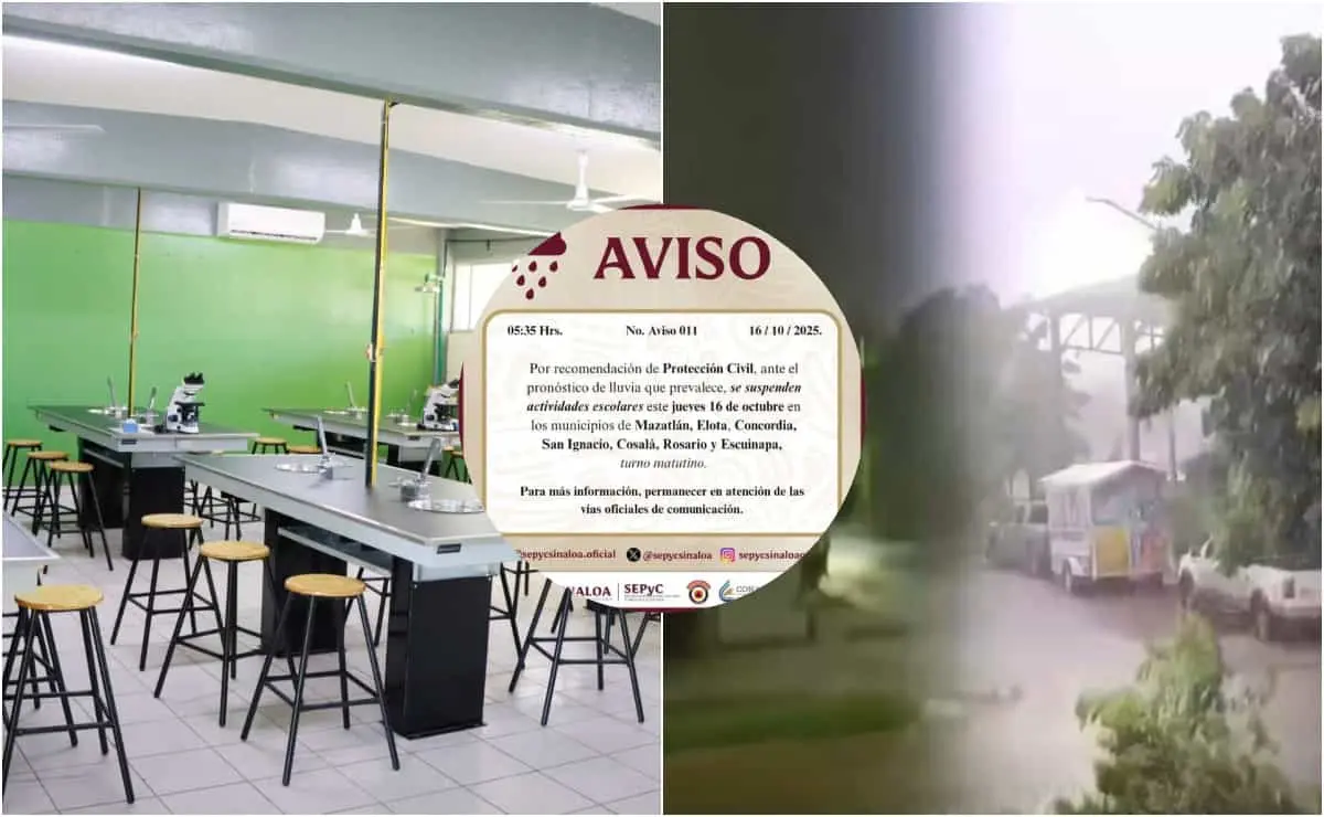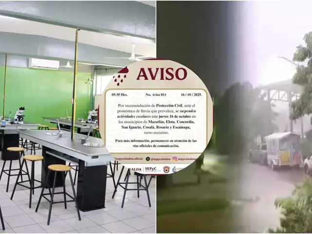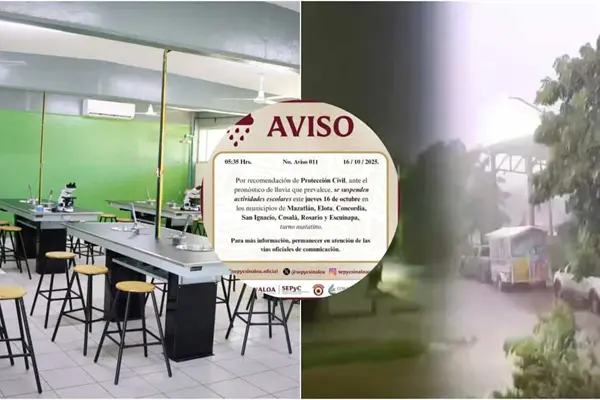 La Universidad Autónoma de Sinaloa (UAS) y el Colegio de Bachilleres del Estado de Sinaloa (Cobaes) suspendieron clases tras las fuertes lluvias registradas la mañana de este jueves 16 de octubre de 2025.