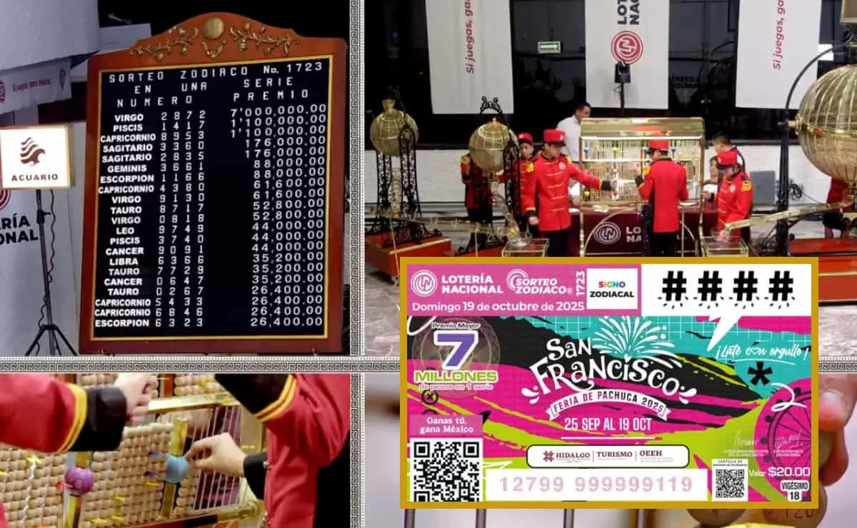 ¿Listo para ser millonario? La Lotería Nacional celebró este domingo 19 de octubre de 2025 el Sorteo Zodíaco número 1723, que en esta edición rinde homenaje a la Feria de San Francisco Pachuca 2025, una de las festividades más importantes del estado de Hidalgo.