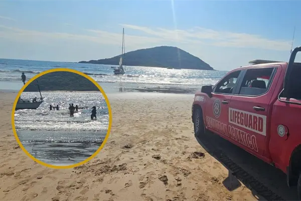 Embarcación sufre falla mecánica en playas de Mazatlán; tres personas son rescatadas