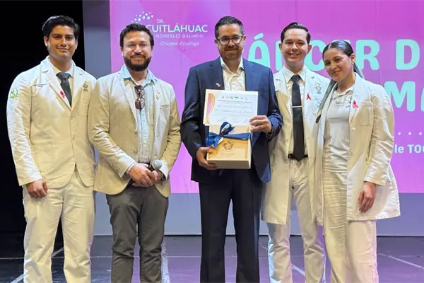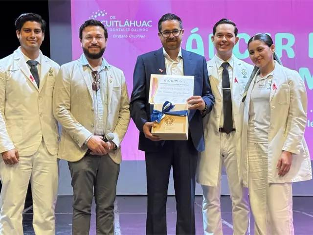 Previo a la entrega de la constancia, el Dr. González Galindo impartió una conferencia dirigida a estudiantes de medicina en el marco del Día Mundial de la Lucha contra el Cáncer de Mama, donde resaltó la importancia de la prevención y la detección temprana de enfermedades crónicas.