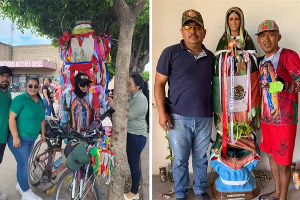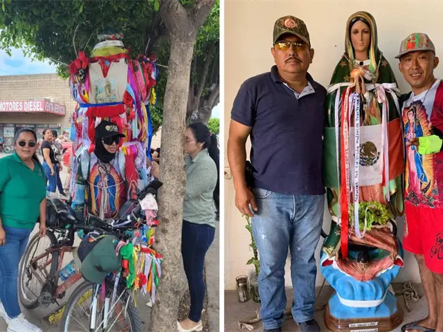 Con el rostro quemado por el sol y una fe inquebrantable, Santiago Caamal Beh, originario de Tixcacal Guardia, Felipe Carrillo Puerto, Quintana Roo, continúa su peregrinaje en bicicleta por el estado de Sinaloa, llevando sobre sus hombros a la Virgen de Guadalupe de casi dos metros de altura, símbolo de amor, esperanza y devoción.