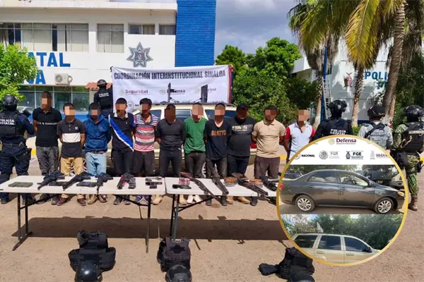 La detención se realizó después de una denuncia anónima y rápida reacción de los elementos del GOES de la Policía Estatal, quienes se trasladaron hasta el campo San Luis, en Navolato y localizaron a los 11 hombres con armas, por lo que procedieron a detenerlos.