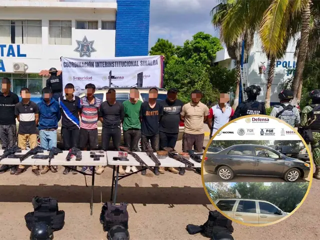 Elementos del Grupo de Operaciones Especiales (GOES) de la Policía Estatal detuvieron a 11 presuntos sicarios en posesión de armas largas, equipo táctico y dos vehículos, uno de ellos con blindaje artesanal.