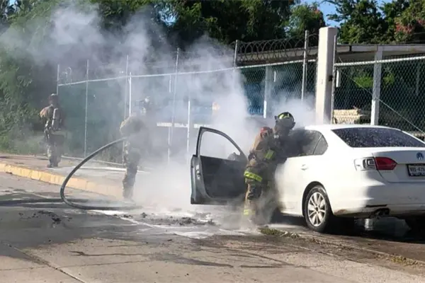 El siniestro movilizó de inmediato a elementos del Cuerpo de Bomberos de Mazatlán y de la Coordinación Municipal de Protección Civil, quienes activaron los protocolos de auxilio para controlar las llamas del automóvil color blanco.