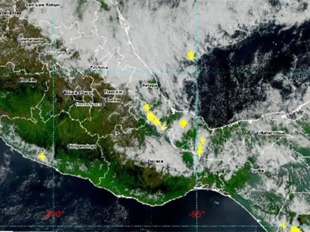 - Intervalos de chubascos (5 a 25 mm): Puebla (región Tehuacán-Sierra Negra), Veracruz (regiones Capital, Las Montañas y Los Tuxtlas), Colima, Michoacán y Guerrero.