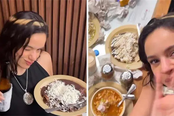 La cantante ibérica llegó a un restaurante junto con un grupo de amigos, donde Rosalía las deliciosas enfrijoladas, para posteriormente comerse un sabroso pozole, el cual le gustó bastante por su picante sabor.