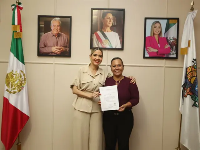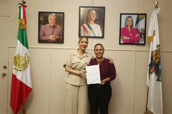 La Presidenta Municipal de Mazatlán, Estrella Palacios Domínguez, entregó este viernes el nombramiento oficial a Valeria Guadalupe González Peraza como nueva titular de la Dirección de Evaluación y Enlace Rural, quien cuenta con amplia experiencia en el trabajo comunitario y en la atención directa a las familias de las zonas rurales del municipio.