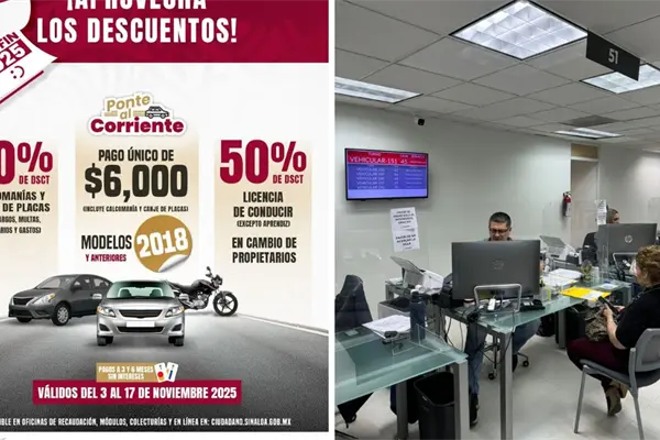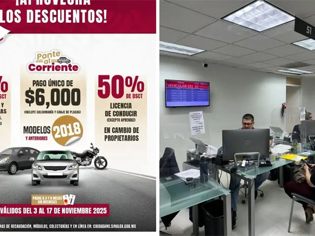 Los descuentos pueden obtenerse en oficinas de recaudación, módulos y colecturías de todo Sinaloa, o de manera virtual a través de Ciudadano Digital. Además, se cuenta con planes de pago de 3 y 6 meses sin intereses con tarjetas participantes.