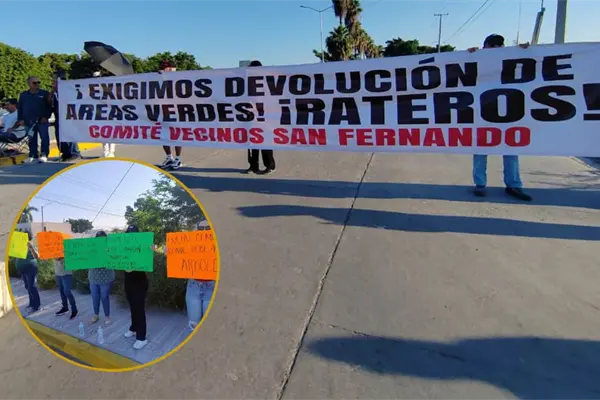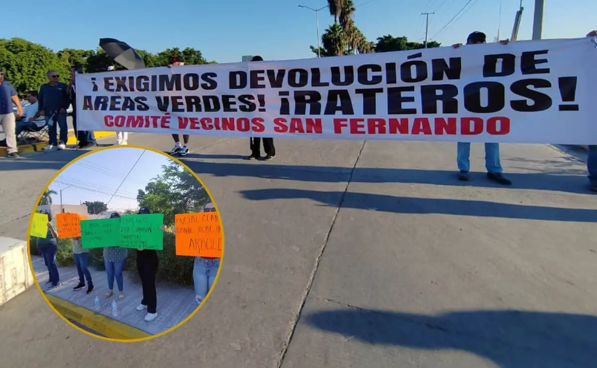 Vecinos de San Fernando en Los Mochis se manifiestan por presunta venta ilegal de áreas verdes