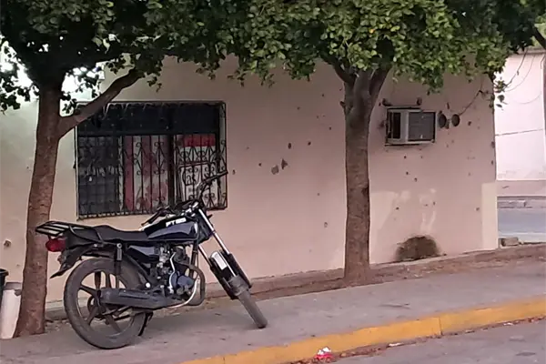 El domicilio baleado se encuentra ubicado sobre la calle Fray Bernardino, esquina con José Valadez, y presentó decenas de disparos de armas de alto poder en su fachada.