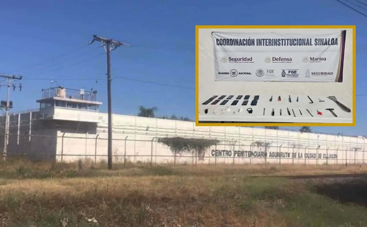 Alrededor de 12 teléfonos celulares y 13 puntas fueron asegurados en una revisión sorpresa en el penal de Aguaruto, en Culiacán.