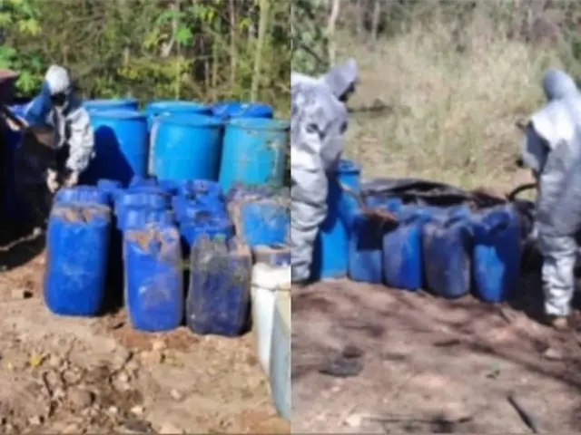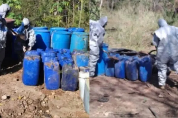 Se indicó que los Elementos del Ejército Mexicano, en coordinación con la Guardia Nacional, la Secretaría de Marina, la Secretaría de Seguridad y Protección Ciudadana, la Fiscalía General de la República, la Fiscalía General del Estado y la Secretaría de Seguridad Pública del Estado, localizaron y aseguraron dos áreas de almacenamiento de precursores químicos.