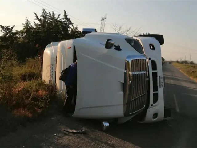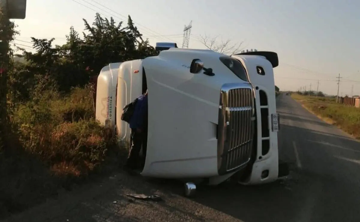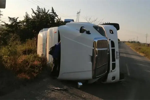 De acuerdo a información de las autoridades, el camión volcó, luego de que el chofer intentará sacarle la vuelta a un vehículo y perdiera el control de la pesada unidad, quedando con media caja fuera de la carretera y obstruyendo uno de los carriles de circulación.