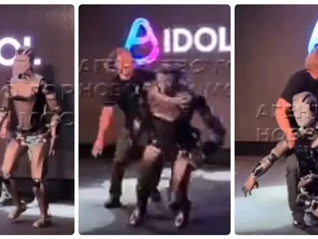 Dos personas del staff de inmediato se apresuraron para levantar a AIdol, al tiempo que una tercera persona cubría el escenario con un telón negro para cubrir el robot y retirarlo de la escena.