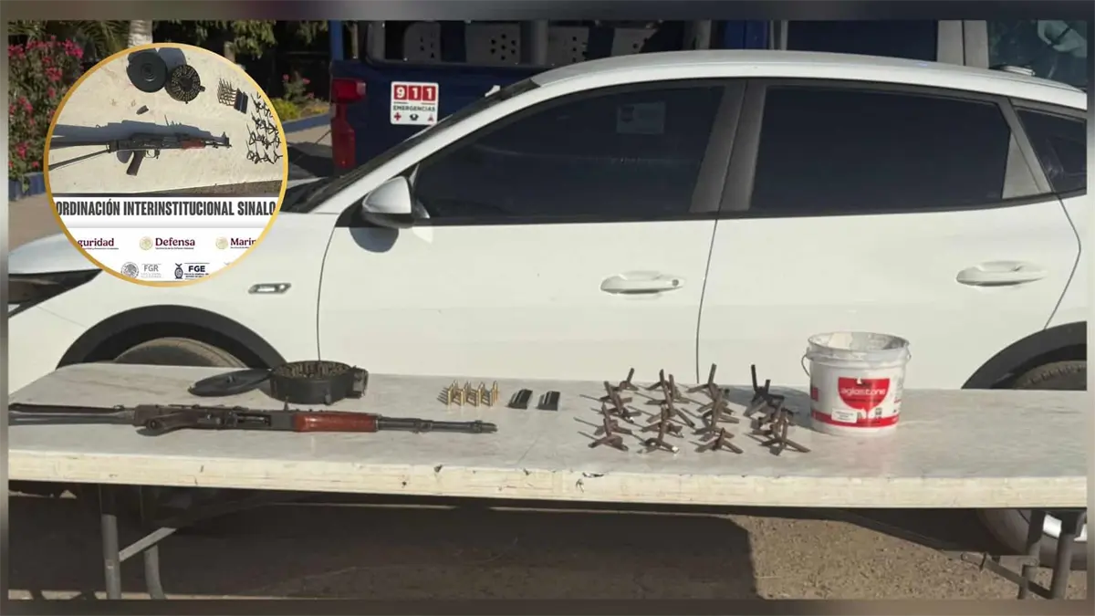 Tras la persecución que se dio la tarde miércoles en la zona norte de Culiacán las autoridades aseguraron un "cuerno de chivo", caragadores y ponchallantas y un vehículo robado.