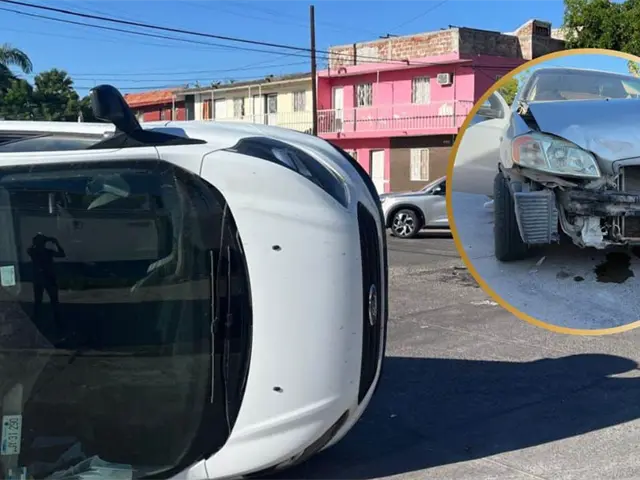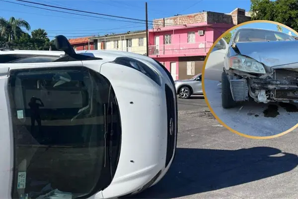 Una mujer resultó lesionada y dos vehículos con severos daños tras el aparatoso accidente y volcadura de uno de ellos, en el cruce de Revolución y Ángel Flores, de la colonia Jiquilpan.