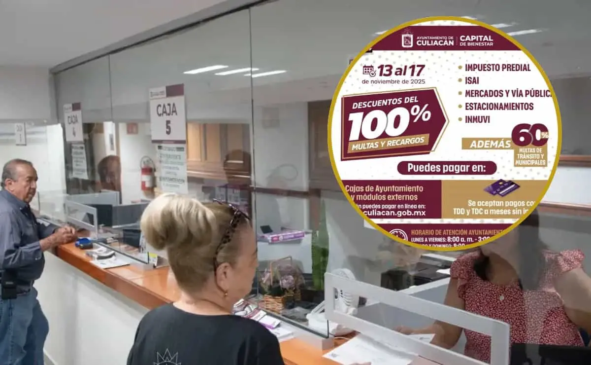 Para aprovechar el descuento, los ciudadanos pueden acudir a las cajas de la Tesorería del Ayuntamiento de Culiacán.