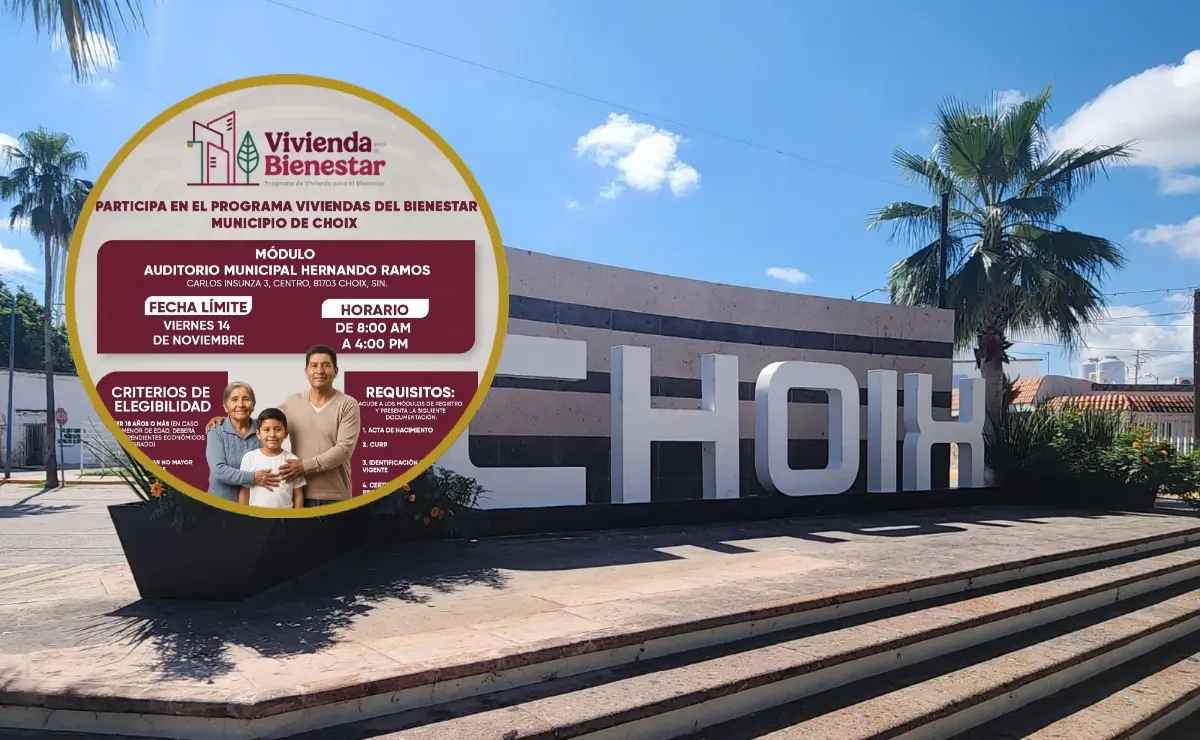 En Choix fue habilitado un módulo de registro para que las familias interesadas puedan incorporarse al programa Viviendas del Bienestar, impulsado por el Gobierno de Sinaloa a través de la Secretaría del Bienestar y Desarrollo Sustentable (Sebides). El punto de atención se encuentra en el Auditorio Municipal Hernando Ramos, ubicado en Carlos Insunza 3, en la zona Centro del municipio.