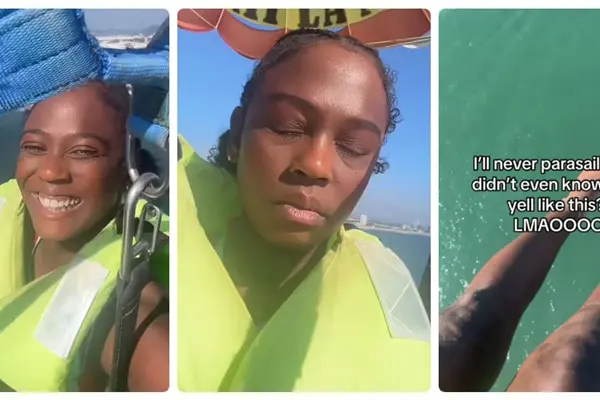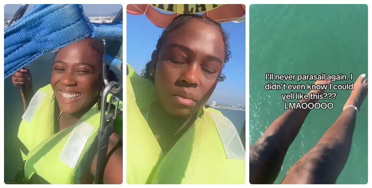 En el video, Ashley aparece visiblemente asustada a bordo del paracaídas; entre risas nerviosas y gritos, la joven reconoce que le advirtieron que no llevara su celular durante la actividad por seguridad, pero aun así decidió hacerlo para grabar cada segundo de esta experiencia que tenía que vivir una vez arribara al puerto.
