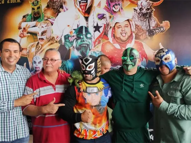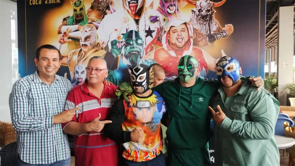 En la conferencia de prensa estuvieron presentes Mr. Iguana, Tigre de Bengala, Príncipe Azteca, Manuel Gracia y los promotores Raúl y Paulo Zúñiga.