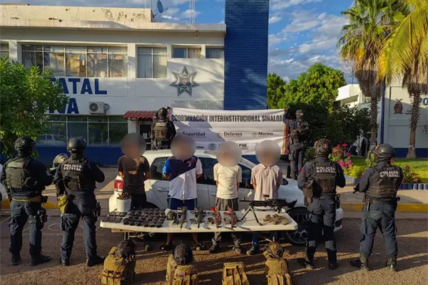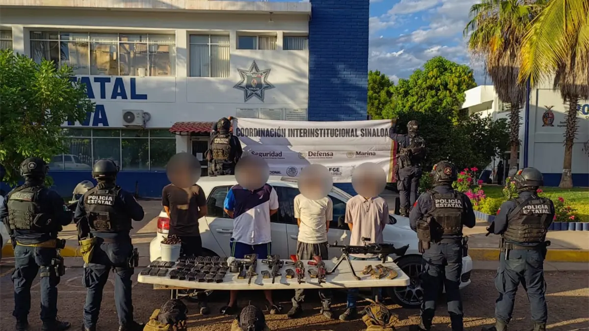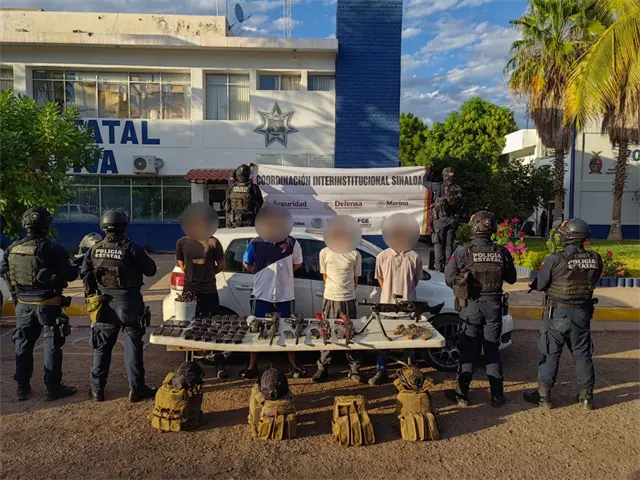 Detienen a 4 sicarios con "cuernos de chivo", rifles M4 y una ametralladora en Valle Alto, Culiacán