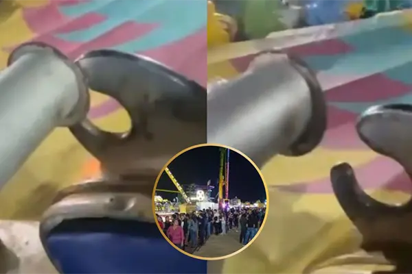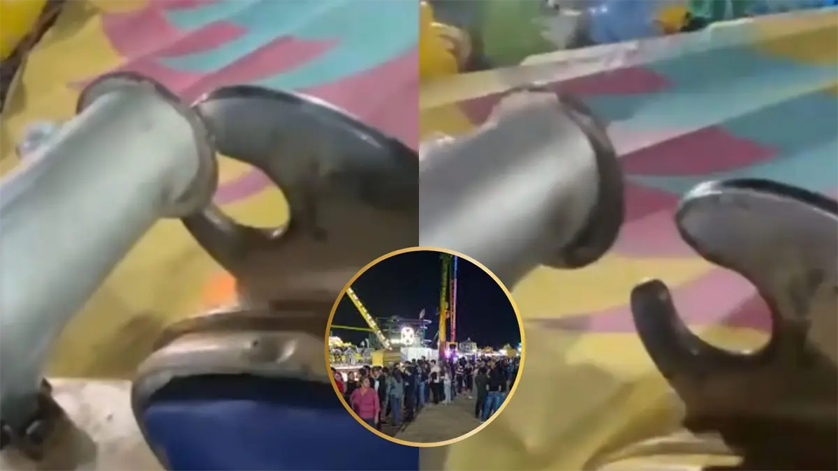 En las imágenes se observa que la barra metálica donde los pasajeros se sujetan se soltó de manera repentina, dejando a una de las usuarias sin punto de apoyo mientras el juego seguía en movimiento.