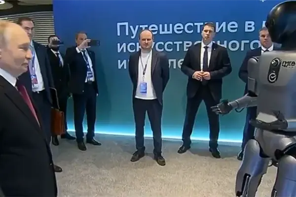 El suceso ocurrió durante la conferencia "AI Journey", una exposición de tecnologías futuras organizada por Sberbank, el mayor banco de Rusia. El video del encuentro se viralizó rápidamente en redes sociales, y muestra no solo los movimientos del autómata sino la curiosa reacción del líder del Kremlin y su equipo de seguridad.