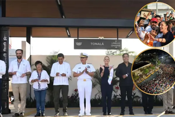 - El recorrido comenzó a las 16:20 horas en Tonalá, donde Sheinbaum develó una placa inaugural antes de abordar. Mientras el aire acondicionado del vagón mantenía helados a los pasajeros, afuera cientos de personas esperaban bajo el calor tropical para verla pasar.