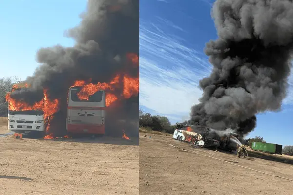 Un incendio registrado este sábado dejó dos autobuses de turismo completamente calcinados en el estacionamiento de un restaurante a un costado de la carretera México 15, en el municipio de Guasave; el siniestro movilizó a cuerpos de emergencia y autoridades de los tres niveles de gobierno.