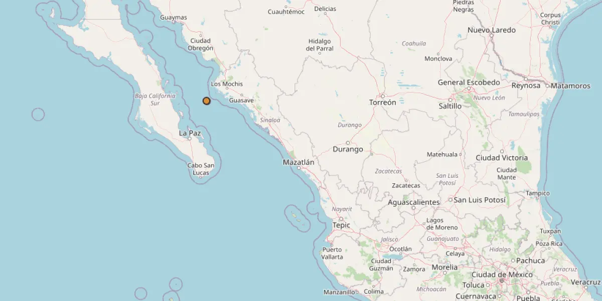 De acuerdo con el reporte oficial del SSN, el movimiento ocurrió a las 2:05 de la tarde con 37 segundos, tiempo del centro de México, en las coordenadas 23.039° de latitud y -105.862° de longitud, a una profundidad de apenas 5 kilómetros.