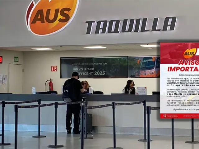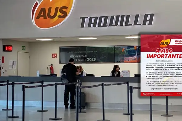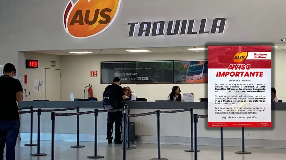 Autotransportes Unidos de Sinaloa informó que las rutas con destino a Guasave y Los Mochis, al norte de Sinaloa, se encuentran detenidas hasta nuevo aviso debido a los bloqueos de casetas por parte de productores agrícolas este lunes en distintos puntos del estado.