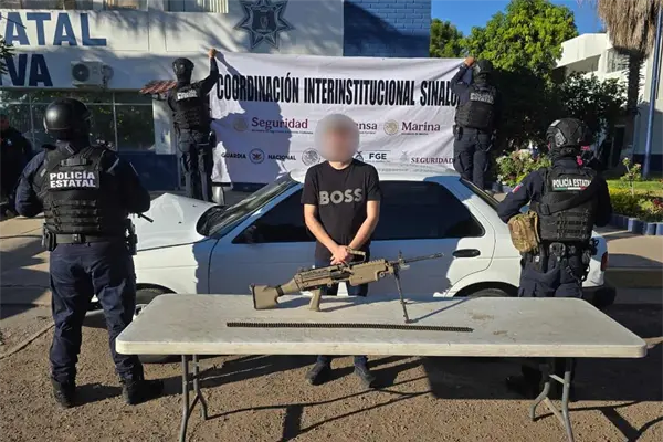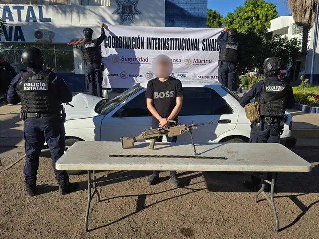 Detienen a sujeto con una ametralladora Minimi en calles de La Conquista, en Culiacán