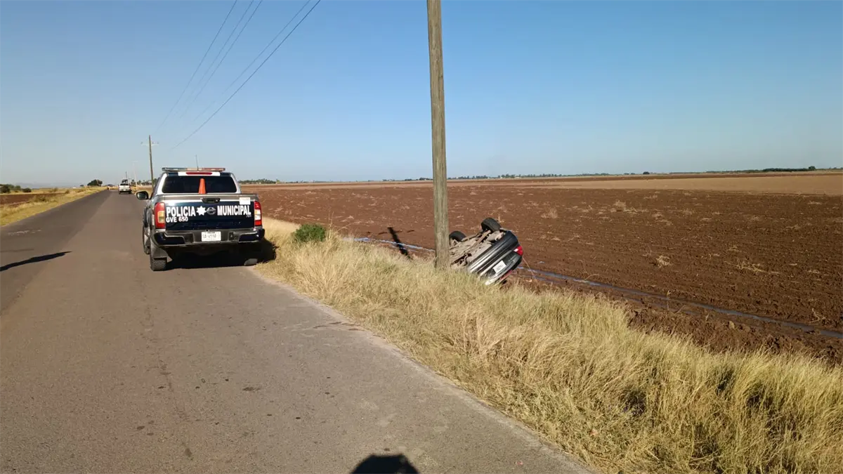 Una mujer y su pequeña niña resultaron con lesiones luego de volcar tras salirse de la carretera por la que circulaban sobre la calle Cinco, cerca de la comisaría de Corerepe, en el municipio de Guasave.