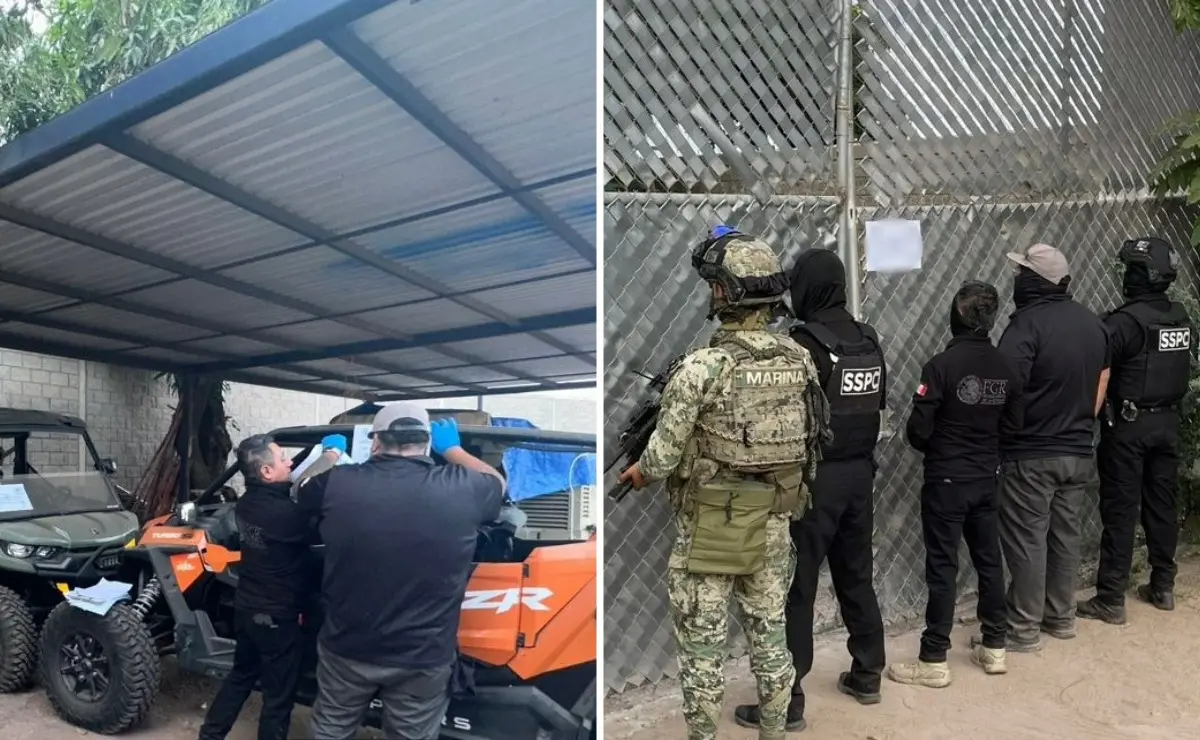 De acuerdo con la información de autoridades, los elementos federales aseguraron cuatro vehículos, entre ellos unidades tipo RZR todo terreno, además de un arma corta, un cargador, siete cartuchos útiles y un teléfono celular, objetos que fueron catalogados por la FEMDO como indicios vinculados a investigaciones en curso.