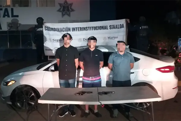 Las autoridades informaron que tras un operativo de seguridad, elementos de la Secretaría de Seguridad Pública de Sinaloa, a través de la Policía Estatal Preventiva, en coordinación con el Ejército Mexicano, la Guardia Nacional, la Secretaría de Marina, la Secretaría de Seguridad y Protección Ciudadana, y la Fiscalía General de la República, así como la Fiscalía General del Estado, detuvieron a tres personas de sexo masculino y aseguraron un vehículo, además de dos armas de fuego en la ciudad capital.