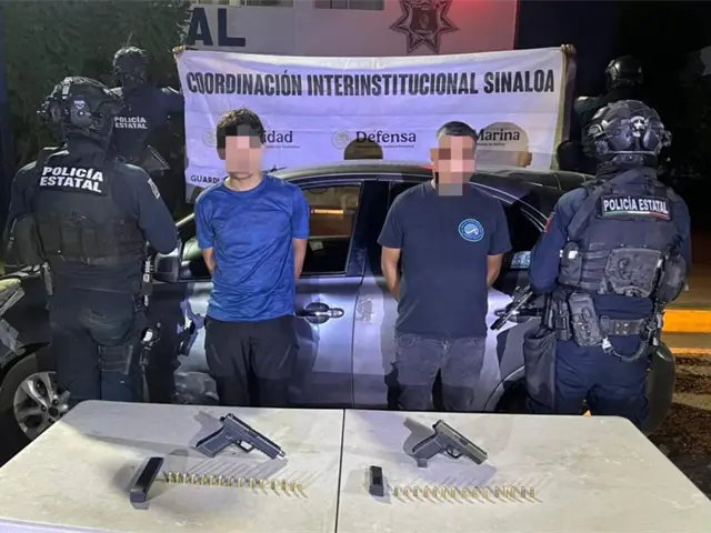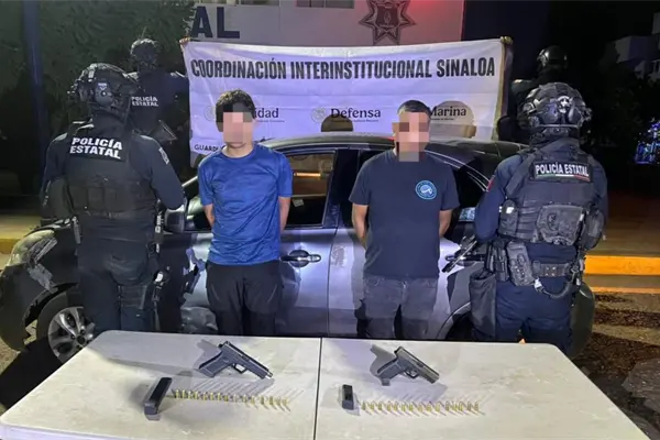 Elementos de la Secretaría de Seguridad Pública de Sinaloa, a través de la Policía Estatal Preventiva, en coordinación con el Ejército Mexicano, la Guardia Nacional, la Secretaría de Marina, la Secretaría de Seguridad y Protección Ciudadana, y la Fiscalía General de la República, así como la Fiscalía General del Estado, detuvieron a dos personas armadas, una de ellas menor de edad, que circulaban en un vehículo sobre la carretera a la sindicatura de Culiacancito.