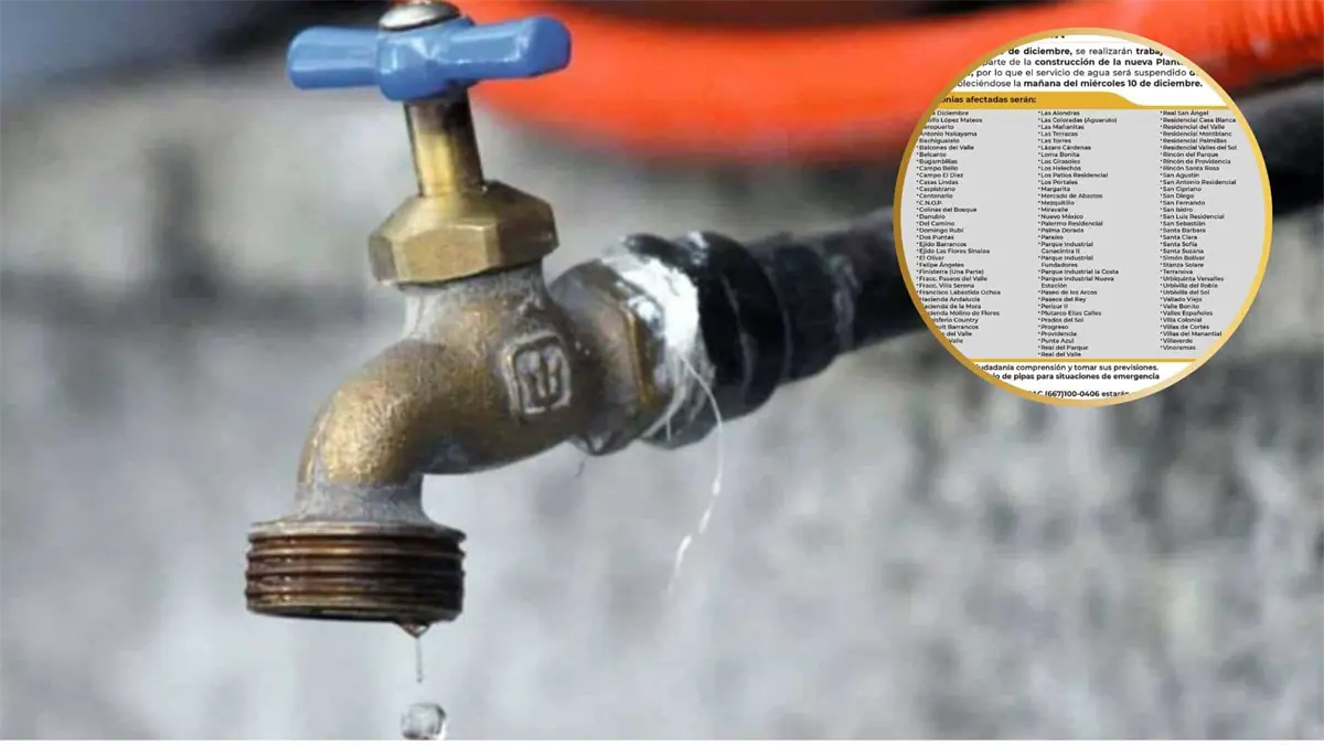 La Junta de Agua Potable y Alcantarillado de Culiacán (JAPAC) informó que 107 colonias al sur de la ciudad, se quedarán sin agua este próximo martes 9 de diciembre a partir de las 6 de la mañana.