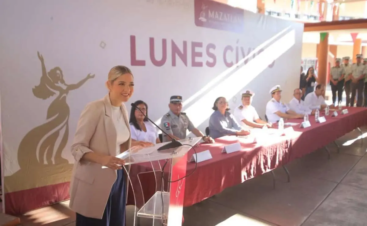 "Quiero felicitarles porque cada Lunes Cívico, como este, ustedes demuestran que amar a México no solamente es respetar nuestros símbolos: también es portarse bien, ayudar a los demás, respetar a sus compañeros y estudiar con muchas ganas. Esas pequeñas acciones, niñas y niños, es lo que los hace ser mejores mexicanas y mexicanos, pero sobre todo el respeto hacia los demás. Todo eso nos ayuda a forjar lo que nosotros llamamos una nueva cultura de paz para este Mazatlán que amamos", expresó.